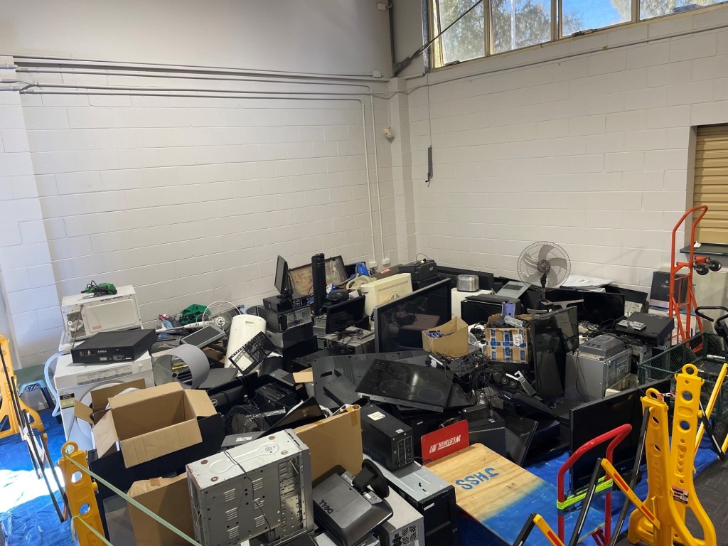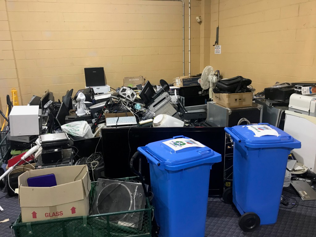 E-waste and general electronics and household electrical items from a suburban school fund-raising drive.