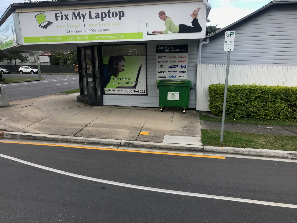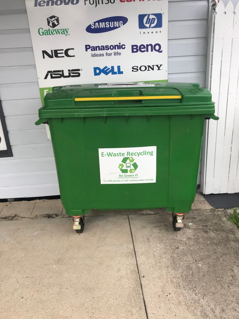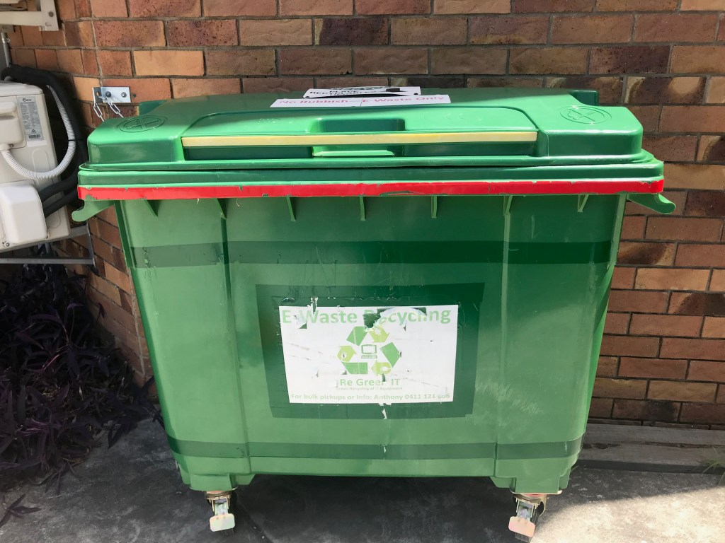An e-waste bin in-situ outside a computer shop at Windsor, Qld.